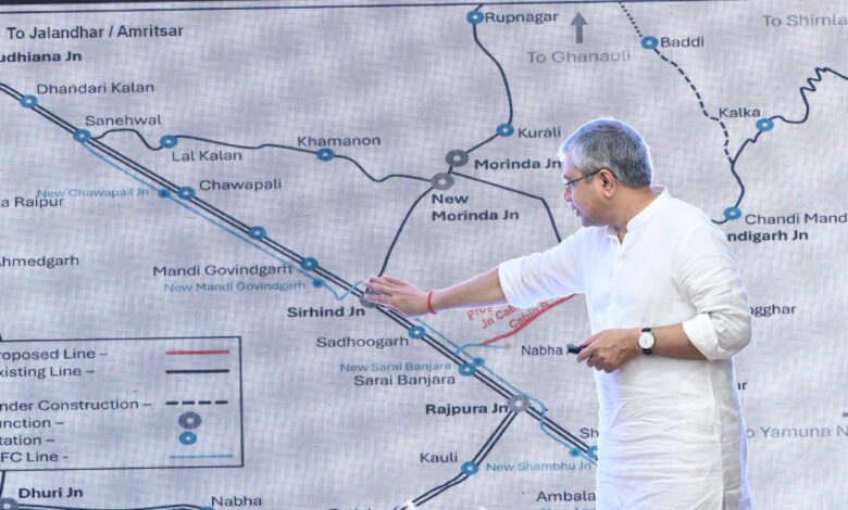 Railway Minister Ashwini Vaishnaw and MoS Ravneet Singh Bittu announced the project, highlighting its minimal land acquisition and economic benefits for agriculture, industry, and tourism.